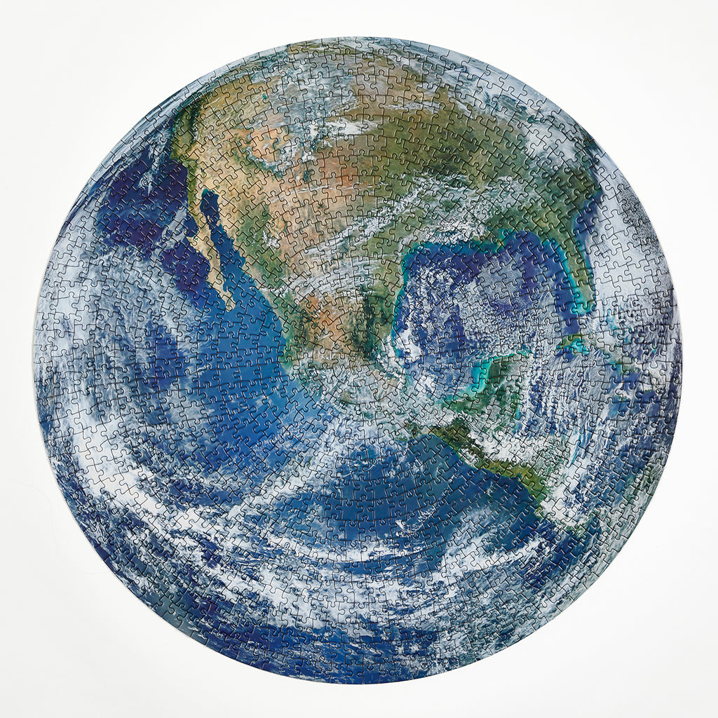 The perfect gift for Earth lovers! This 1000 piece, 26.5" (67cm) circular Earth puzzle features a portion of the Western Hemisphere and the Pacific Ocean from space in incredible detail! The image, courtesy of NASA, is one of the clearest images of the Earth to date, from their iconic Blue Marble series, and shows our planet in stunning clarity.