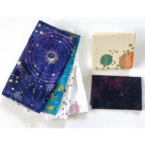 Each kit has a different surprise mix of space and celestial patterns that match the other paperless towels and tissues we sell in our store. So if you love your starter kit, you can easily expand it!