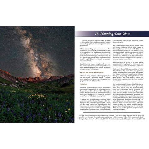 Grant begins by reviewing equipment and supplies. He then discusses many software programs, websites, and mobile apps that will help you plan your shots. Finally, he offers extensive advice on how to capture and process images at night. He goes beyond the basics and teaches how to blend multiple exposures and create huge stitched images.